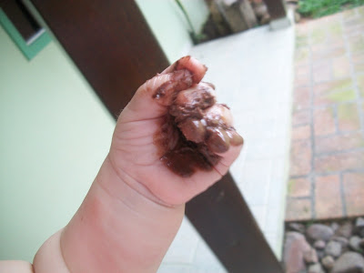 haha, ontem dei um tabletinho de chocolate pra Larinha e olha no que deu!