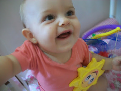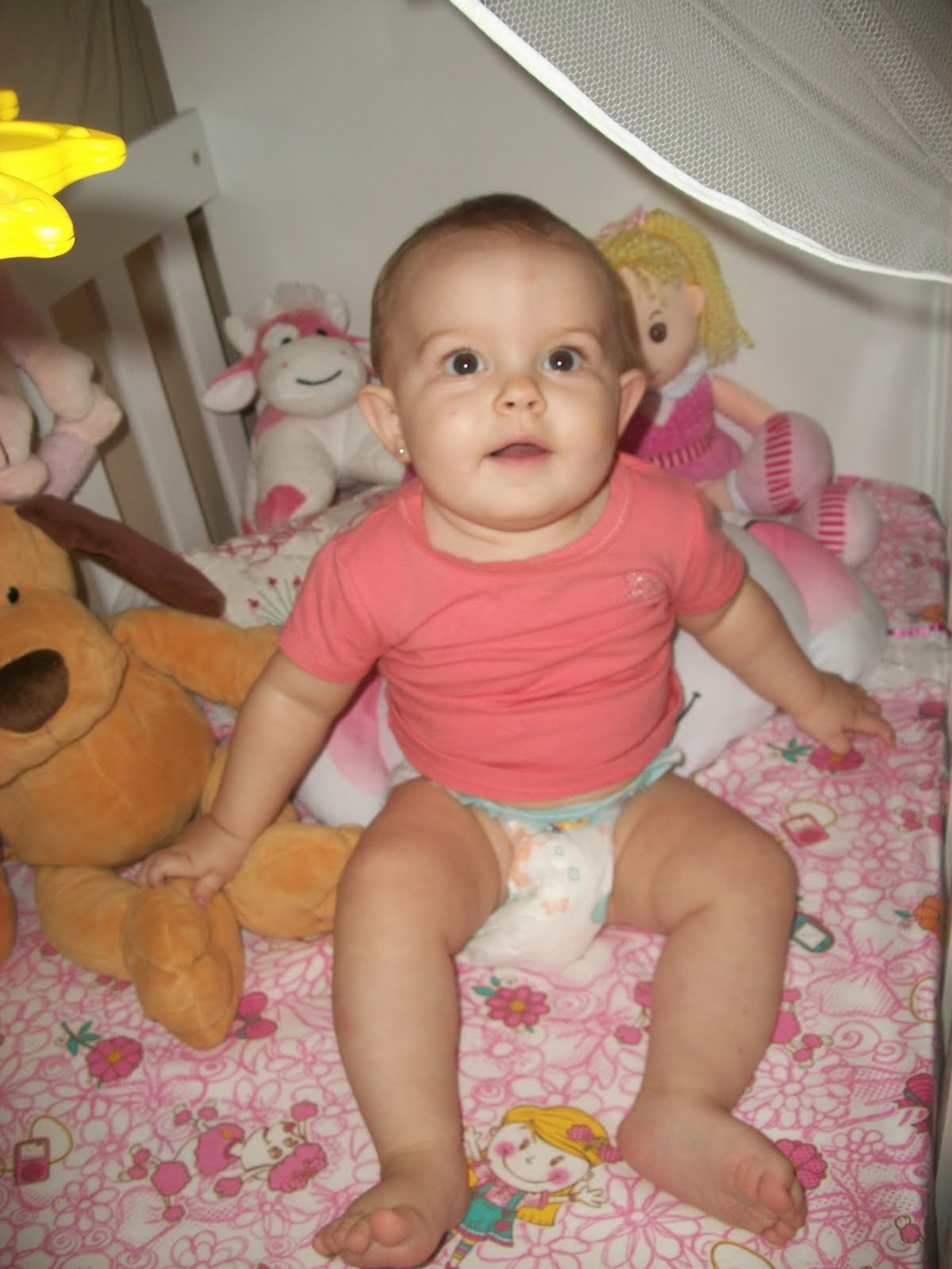 Depois fui guardar as roupas dela, deixei ela brincando no berço, ela adora brincar lá, senta e levanta tempo todo...quer ver quando conseguiu derrubar o móbile, ela adorou kkkkk