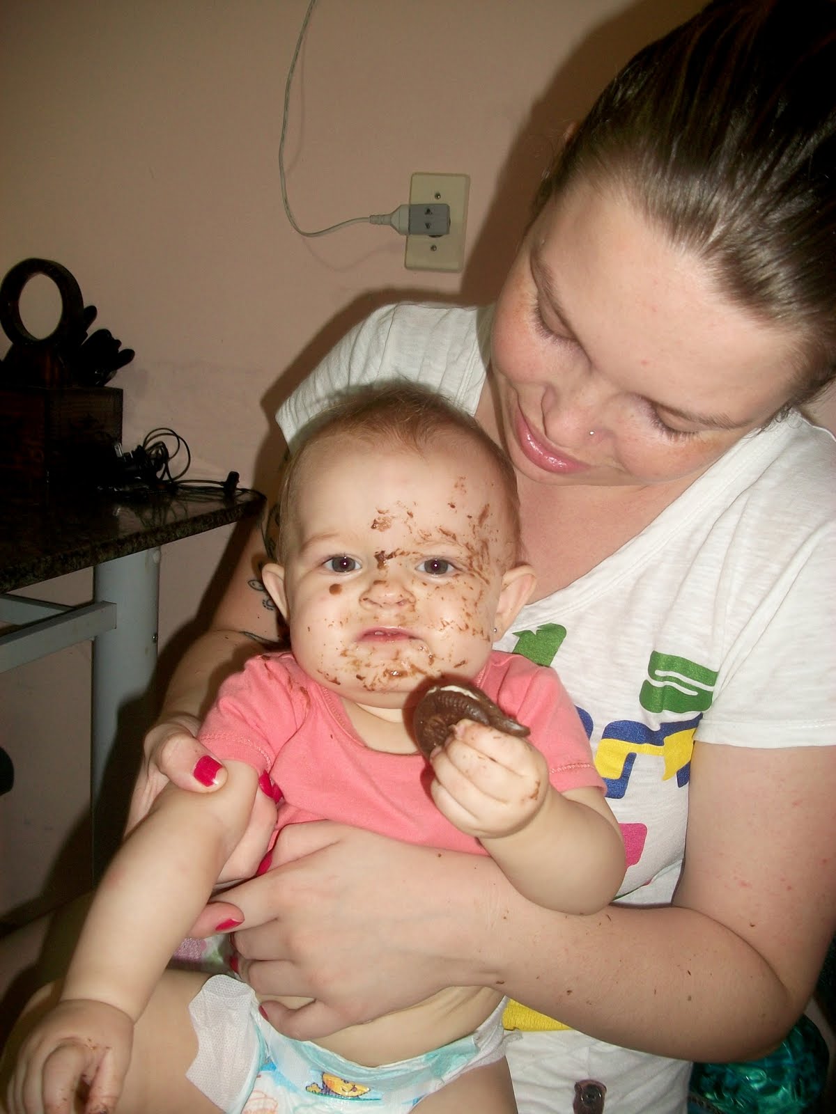 No fim da tarde, dei uma bolacha pra ela comer, olha o resultado!!!
